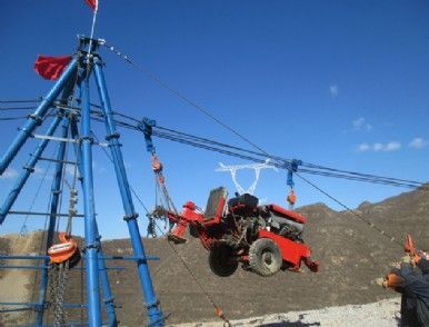 我們從研發2噸級輕型索道開始,逐步實現了4噸至8噸級重型索道的全覆蓋。2015年,我公司與新疆輸變電工程有限公司合作開發的8噸級重型索道在1000千伏蒙西至天津南線路11標段試點成功,應用重型索道完成了大牽引機(7.75噸)往高山塔位的運輸。我公司目前已擁有標準化輕型索道200多副,4噸及以上重型索道4副,所有索道支架均采用可拆卸式鋼管結構。具有年承攬500千伏及以上輸電線路索道運輸350公里的機具裝備和施工力量。截止2018年,在索道工程施工方面,公司共完成1000千伏浙北至福州等特高壓交流項目7個、±800千伏向家壩至上海等特高壓直流項目5個、500千伏錦屏至西昌等超高壓項目11個、220千伏線路工程2個,以上工程均安全準點完工,得到甲方單位的一致好評。索道工程業績遍及浙江、四川、江西、廣西、廣東、山西、陜西、河北、遼寧、新疆、西藏等全國多個省份。